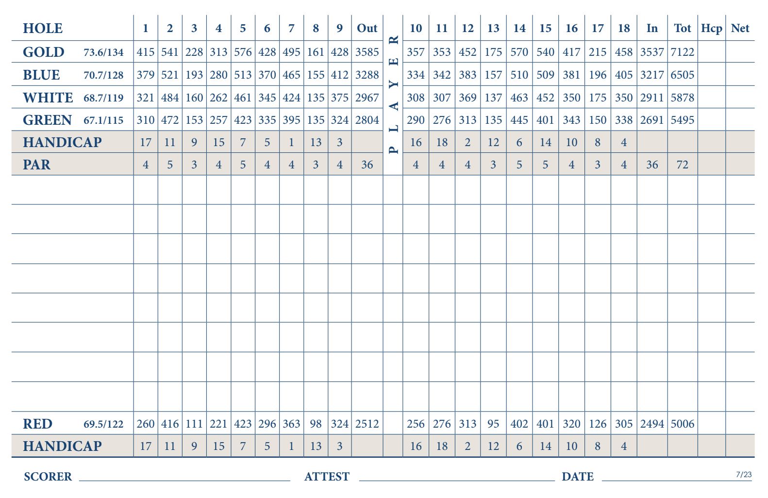 | Tees | Yardage | Rating | Slope |